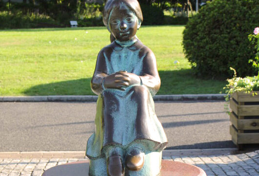 かつて南改札前に飾られていたものが新たにここに移転した形で、シースルーの壁を持つ綺麗な建物の中に外を向く形で収められているのですが、特に晴れた日の日中などは壁(ガラス)の反射によって分かりづらい場合もあるので、注意が必要です。