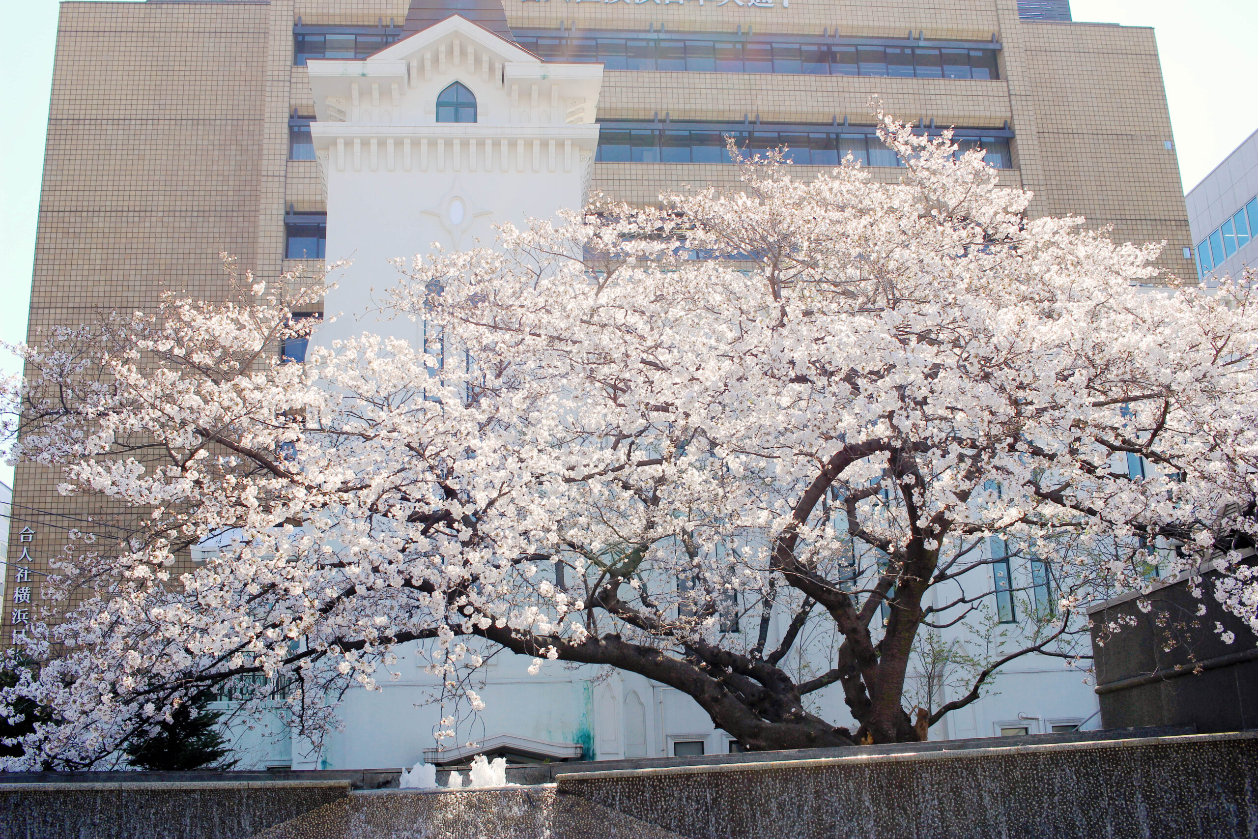 開港広場前の春