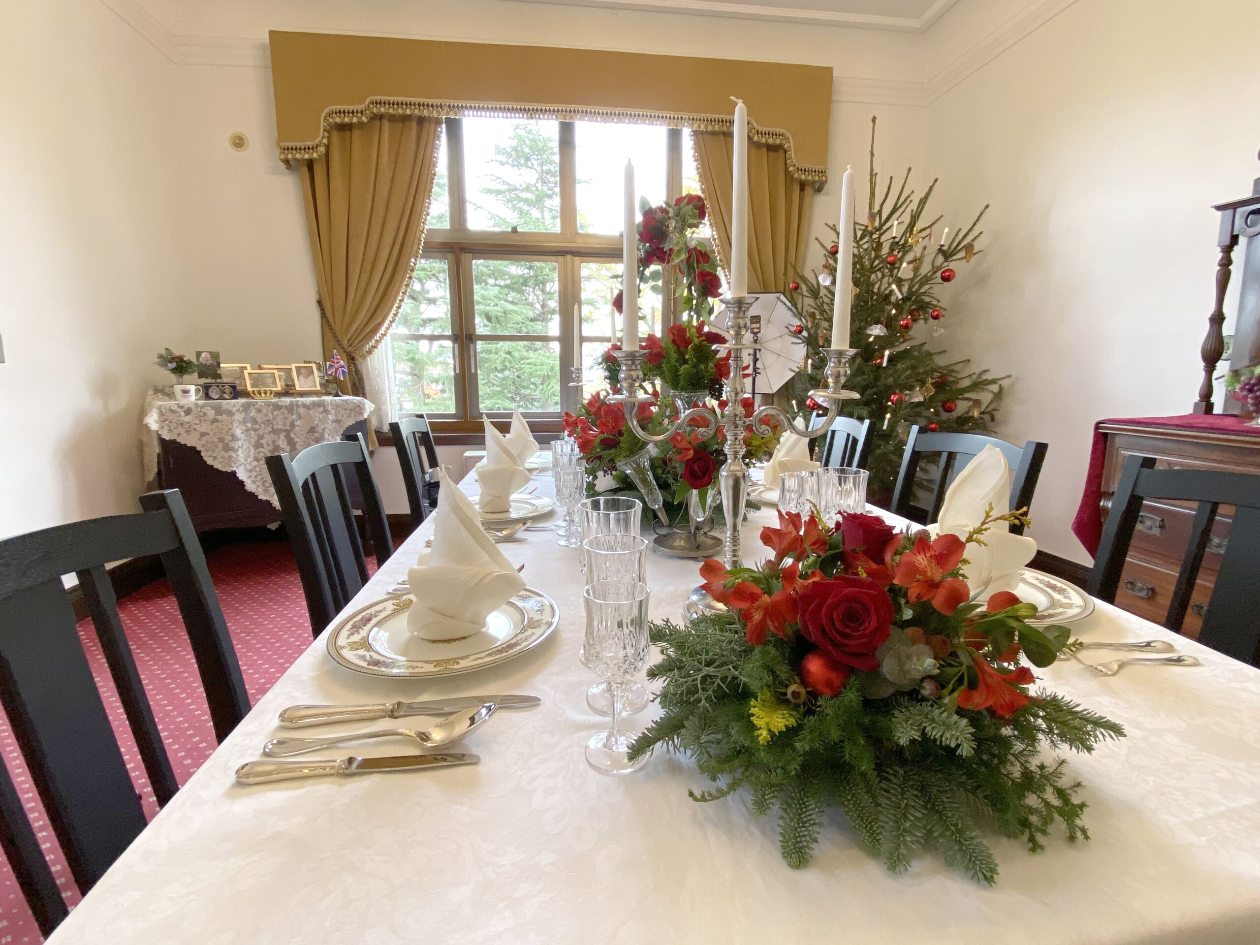 横浜市イギリス館には、元々イギリス総領事公邸だった建物を横浜市が譲り受けた後”イギリス館”として再オープンしたという歴史があるため、館内の飾りつけも、時に規模の大きいパーティーを連想させます。