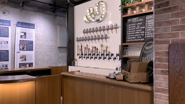 店内に入ると、雰囲気はオシャレなスポーツバーのようで、店員さんの制服もベイスターズのホームユニです。