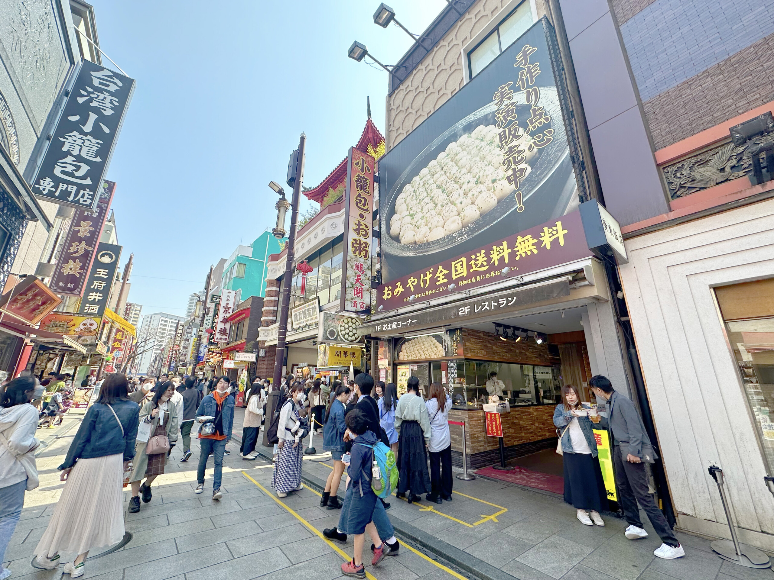 左手にあるのは上海小籠包専門店の鵬天閣(公式サイト)です。お店の周辺は常時食べ歩きのお客さんで賑わっていますが、個人的にもイチ押しの食べ歩き店です。