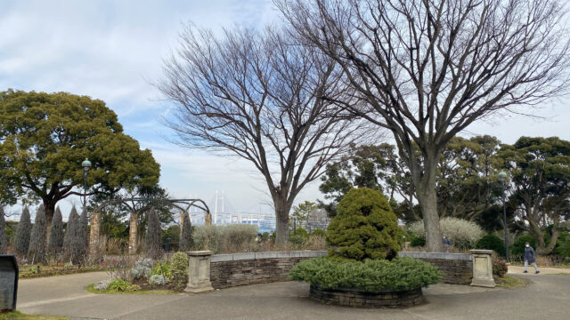 外交官の家と反対側の海方向には、遠くにベイブリッジを望むことが出来て、写真撮影用のエリアも用意されています。