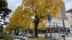 並木道沿いからブラフ18番館方面を望む風景にも、秋を感じることが出来ます。