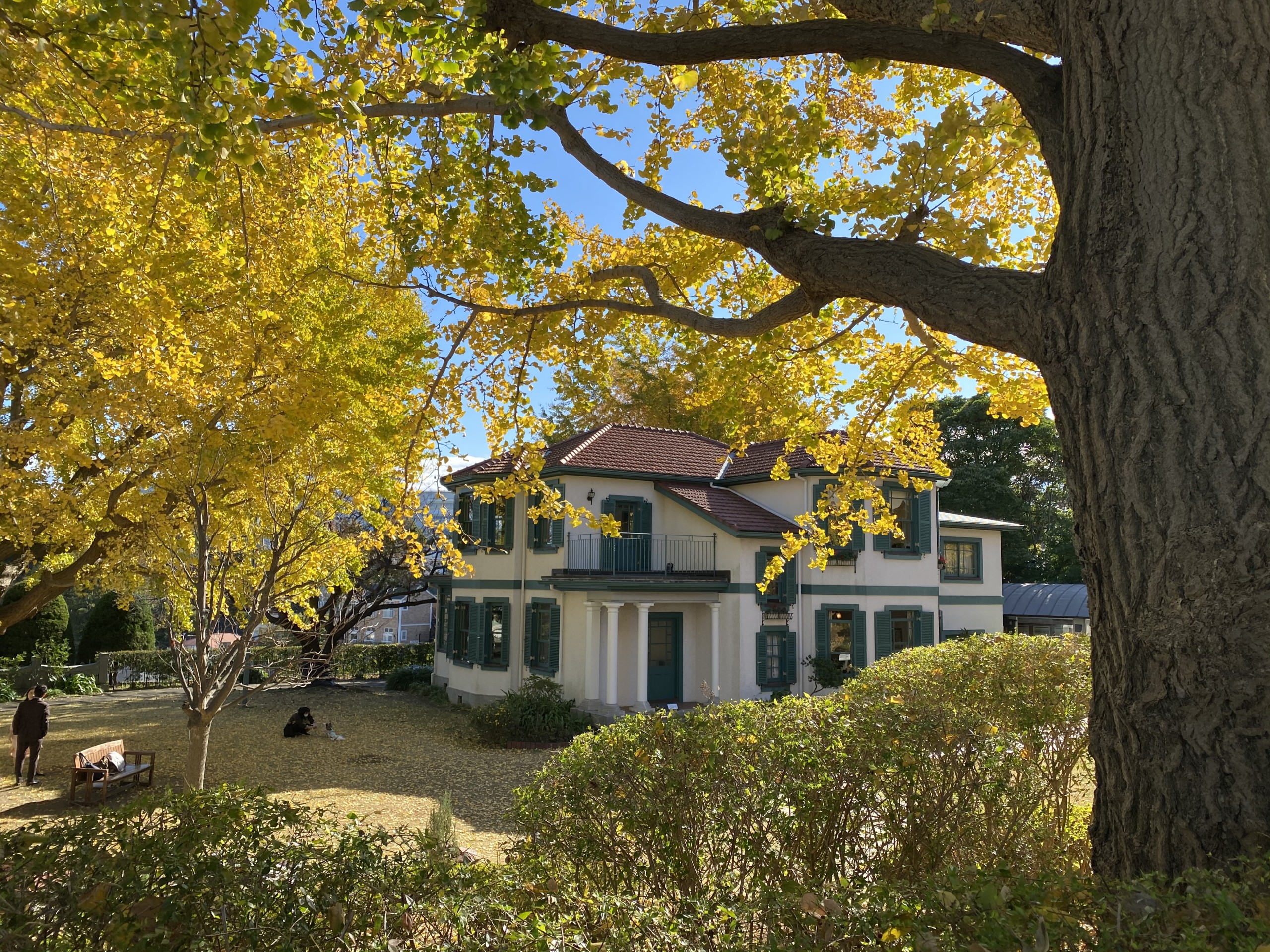 一方、毎年12月中旬ごろに紅葉のピークを迎える山手234番館公式サイト)前の紅葉は、11月下旬現在、まだこれから(参考:紅葉と元町公園)。