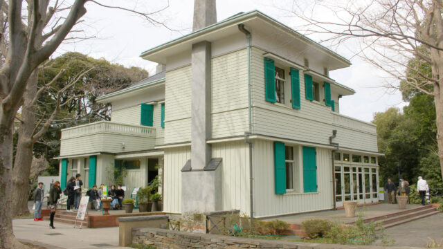 イタリア山庭園公式サイト)入口すぐ傍のところにある外交官の家公式サイト)の真横には、庭園名物・メタセコイアの並木道があります。