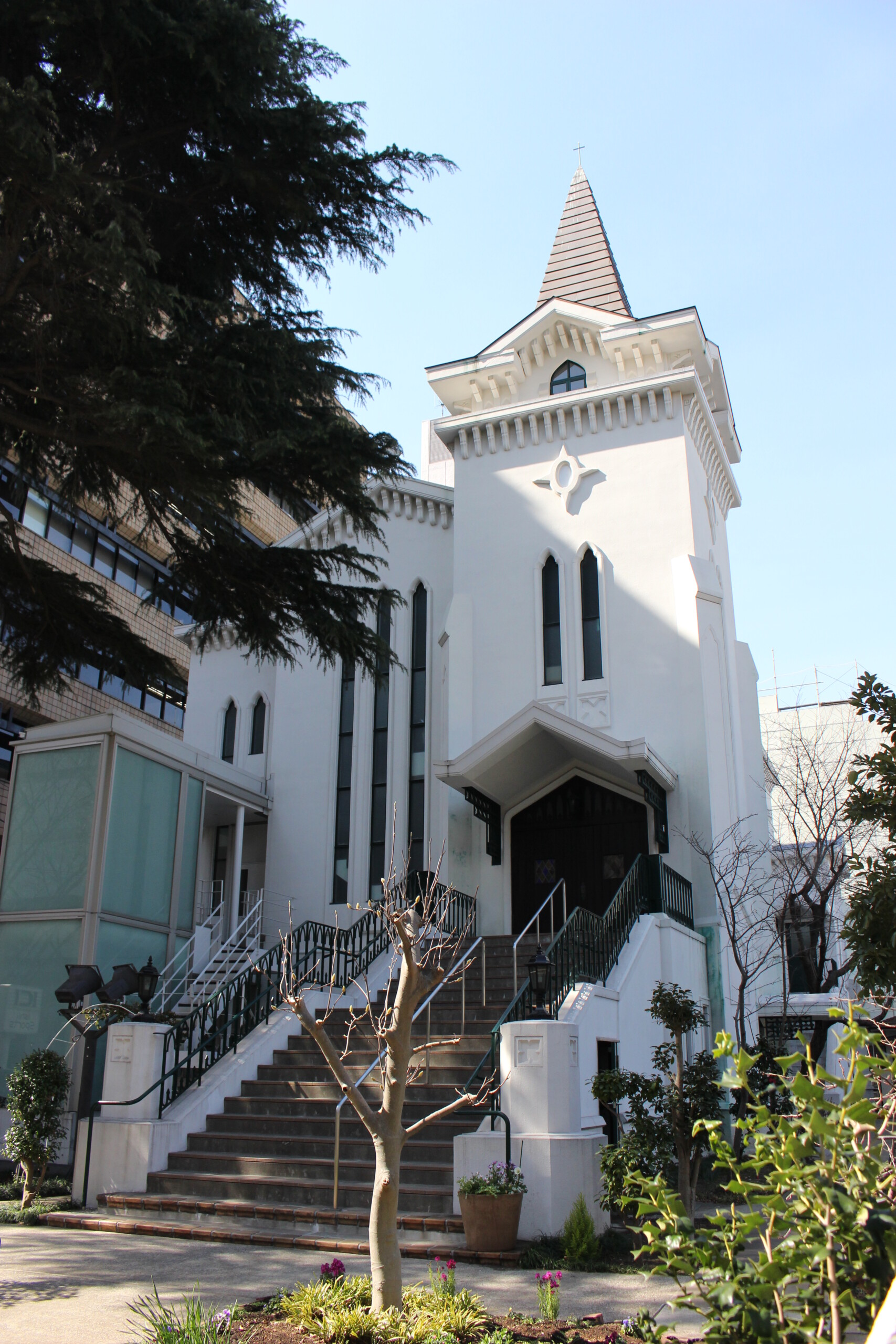聖堂すぐ隣に開港広場からも見える桜の木が植わっているので、