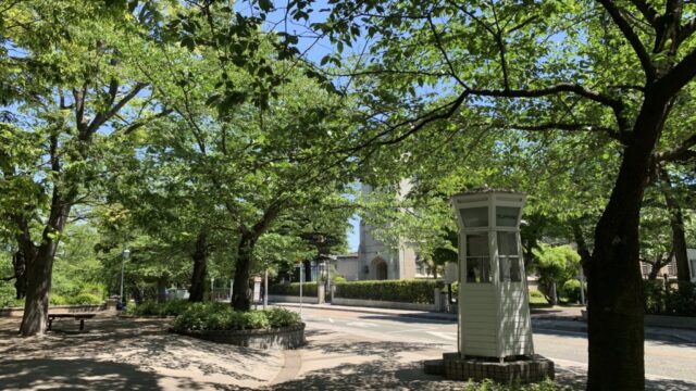 余談として、中華街大通りの向こう側ほぼ真正面の位置に、関帝廟通りとの間をつなぐ香港路(市場通りと中山路の間に通された、細い道です)の入口が用意されていますが、加賀町警察署前から歩いて”山東”付近まで来ると広東道もほぼ終わり、突き当りにて開港道に合流します。