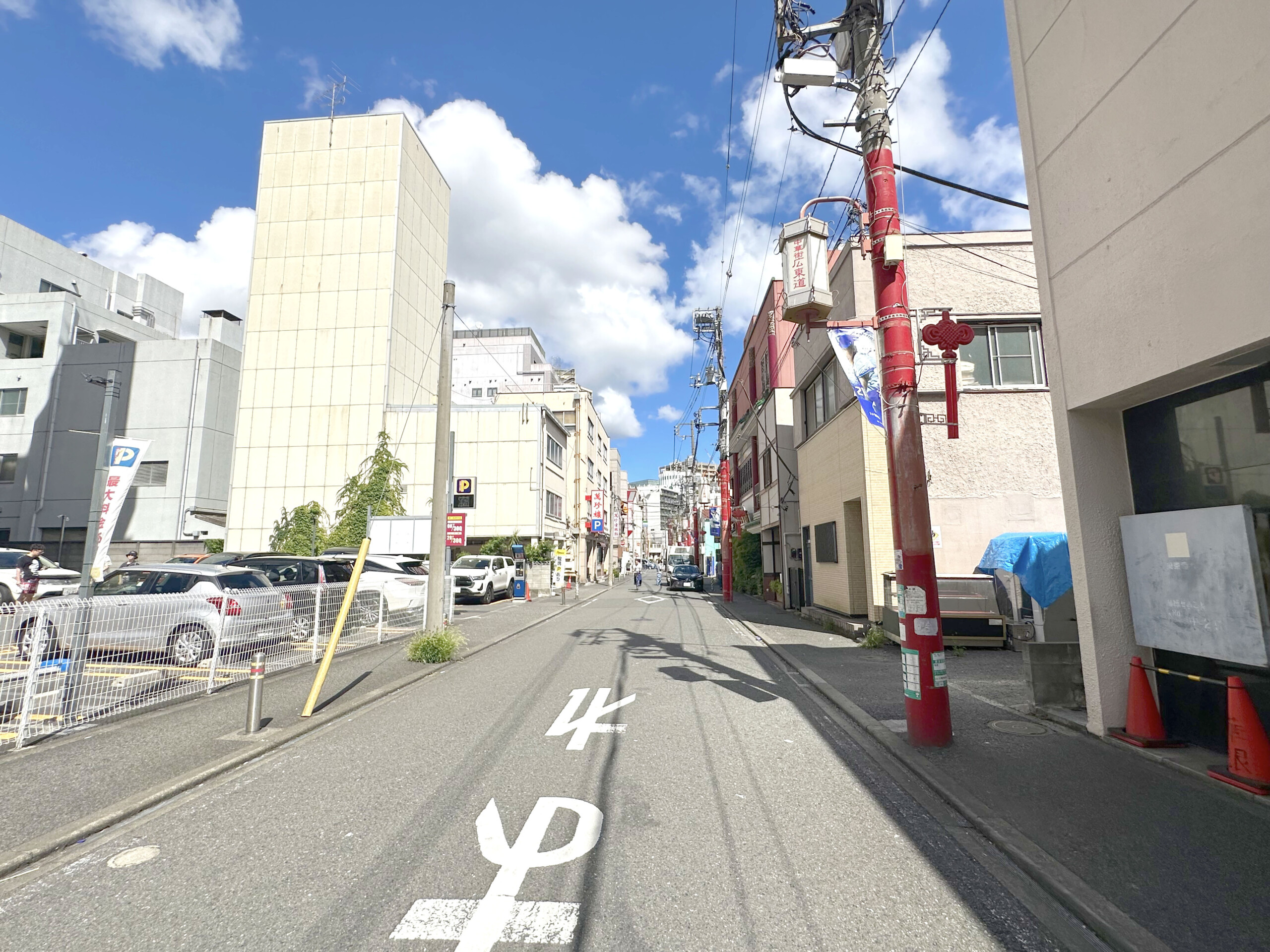 関帝廟通りと同じく、赤い電柱が目を引きますが、