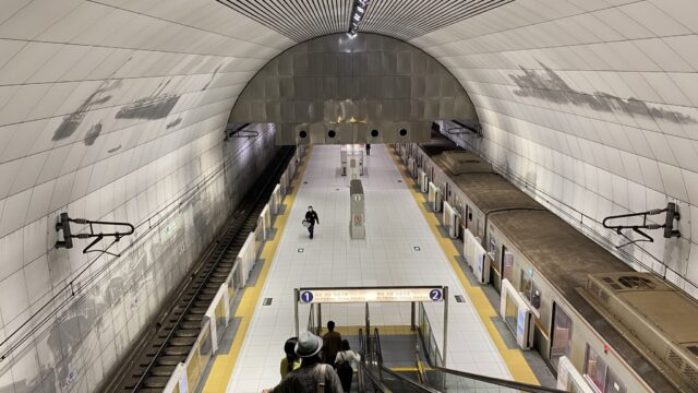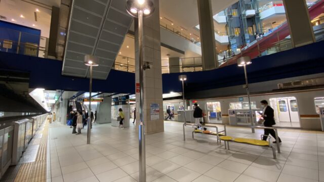 横浜中華街山下公園が目的地の場合、進行方向に向かって車両中盤より後ろ側に乗ると改札口が近くなります。