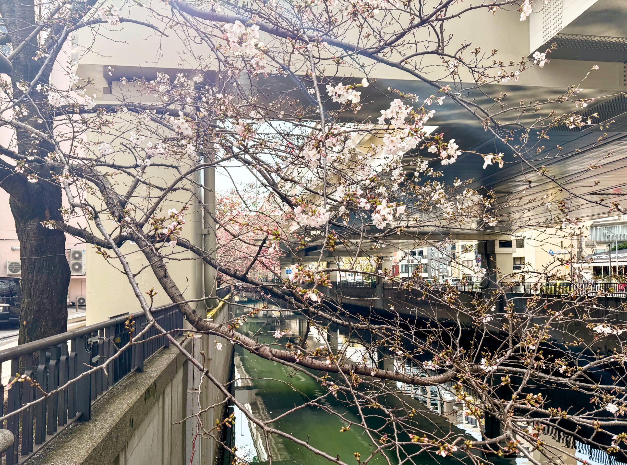 堀川沿いの桜並木も、早くも結構華やかです。