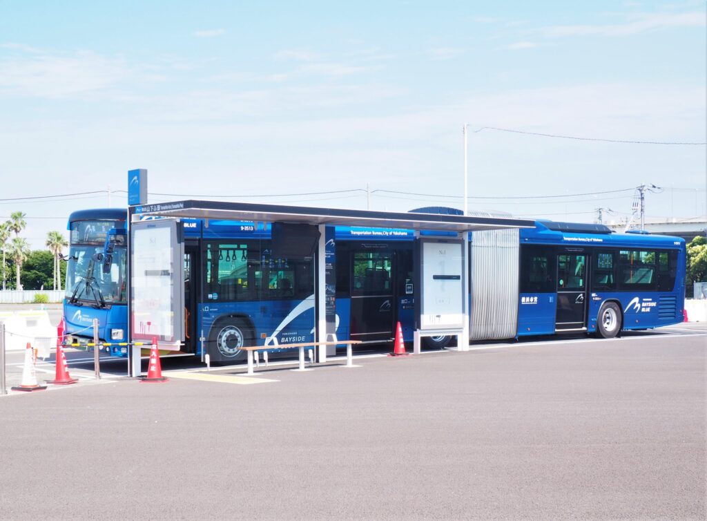 人目を引く二両編成のスタイリッシュな「青いバス」は、走行区間的にはみなとみらい線の沿線をまるまるカバーしています。