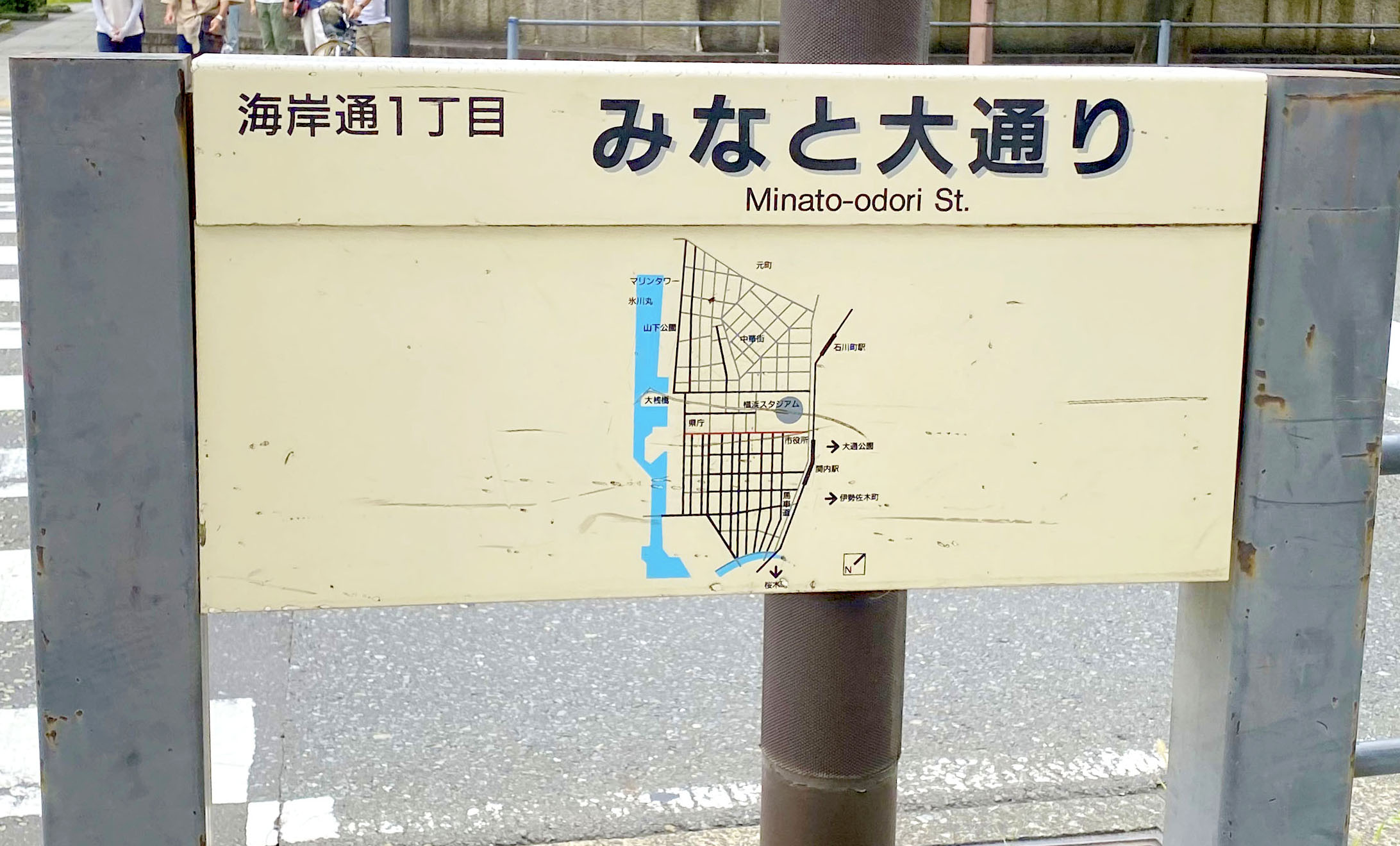 みなと大通りは、JR関内駅前から始まり、右手に横浜公園・横浜スタジアム、左手に旧横浜市役所というロケーションの中に通されています。どちらかというと、通りの名前そのものよりも、通されたロケーションの方が印象に残る通りですね。