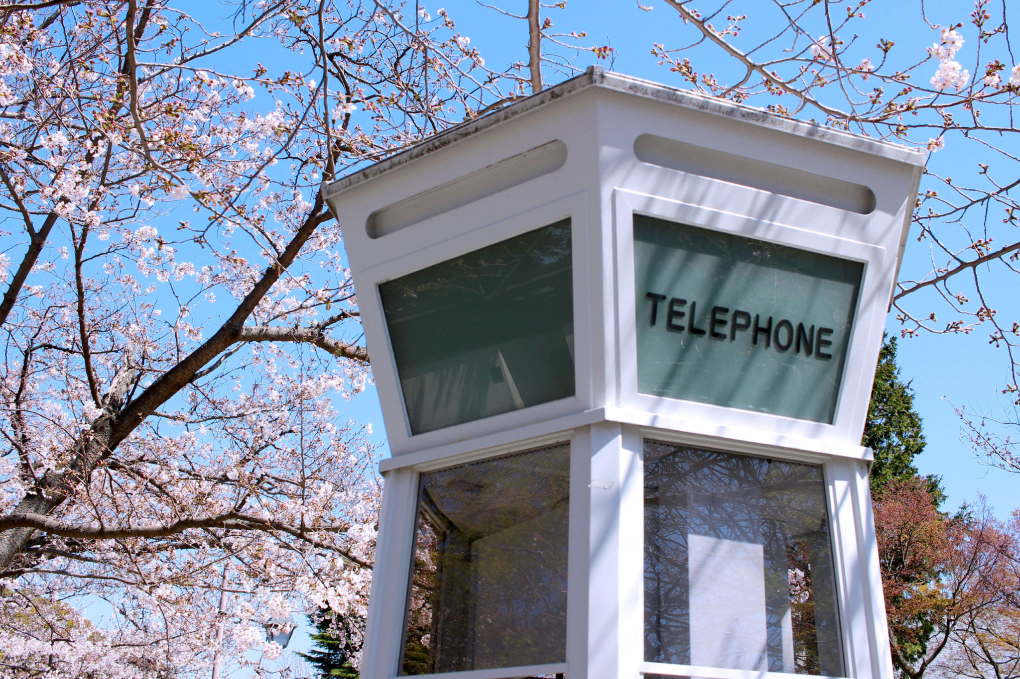 桜に囲まれる形で立っているのは、元町公園前名物の電話ボックスです。
