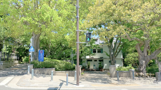 前田橋の向こうには、霧笛楼(公式サイト)の看板と建物も視界に入ってきますが、かつて(関東大震災以前)山手本通りに向けて架けられていた名物階段”元町百段“は、大体現在のこの付近から始まっていたようです。