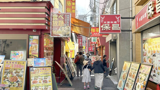 天長門のすぐ隣にはタピオカのお店が、横浜大世界の前には屋台風の食べ歩き店がそれぞれありますが、この先にもさらに何店か、食べ歩きのお店があります。”昔はゼロだった”というわけでは決してないのですが、件のコロナ禍に前後して食べ歩き系のお店がさらに何店か増えたような印象を受けました。