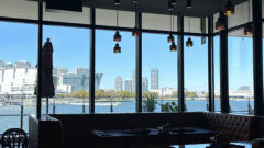 マリンウォークの施設前には、海に向かうように設置されたベンチが用意されているのですが、そのベンチの目の前にあるのがシーバスのハンマーヘッド乗り場です(チケット売り場は、ハンマーヘッド内にあります)。