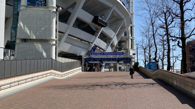 駅を出てほぼすぐのところから、横浜スタジアムが視界に飛び込んできます。