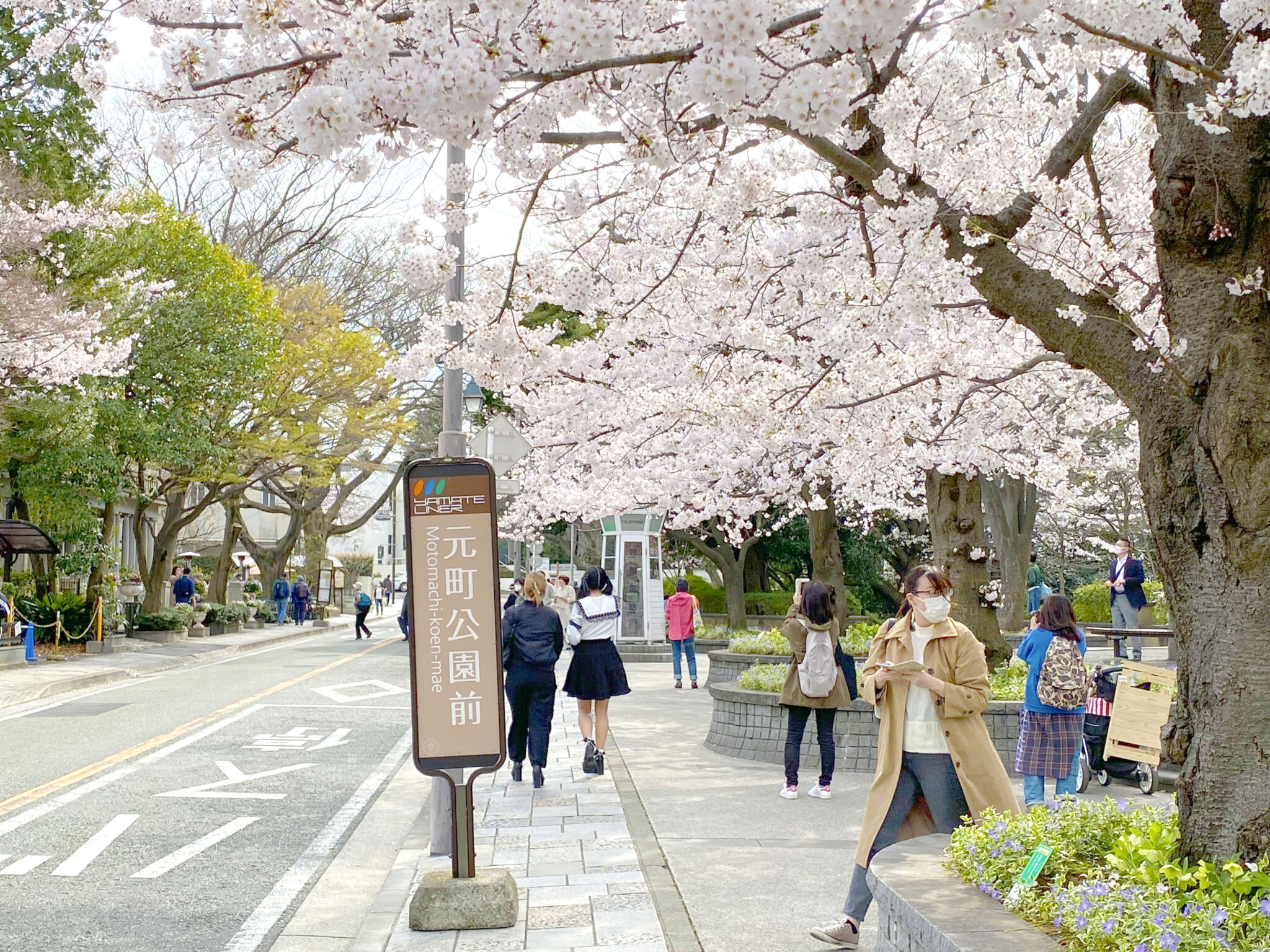 元町公園名物・白い電話ボックス方向へ。この付近は割と人が流れていることが多いですが、