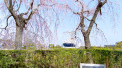 港の見える丘公園から外国人墓地方面に進んだとき、墓地の向こうで桜が満開になっている様子が確認できました。