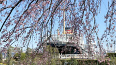 展望台すぐ横に見えるヒザクラは、4月上旬の時点で満開でした。