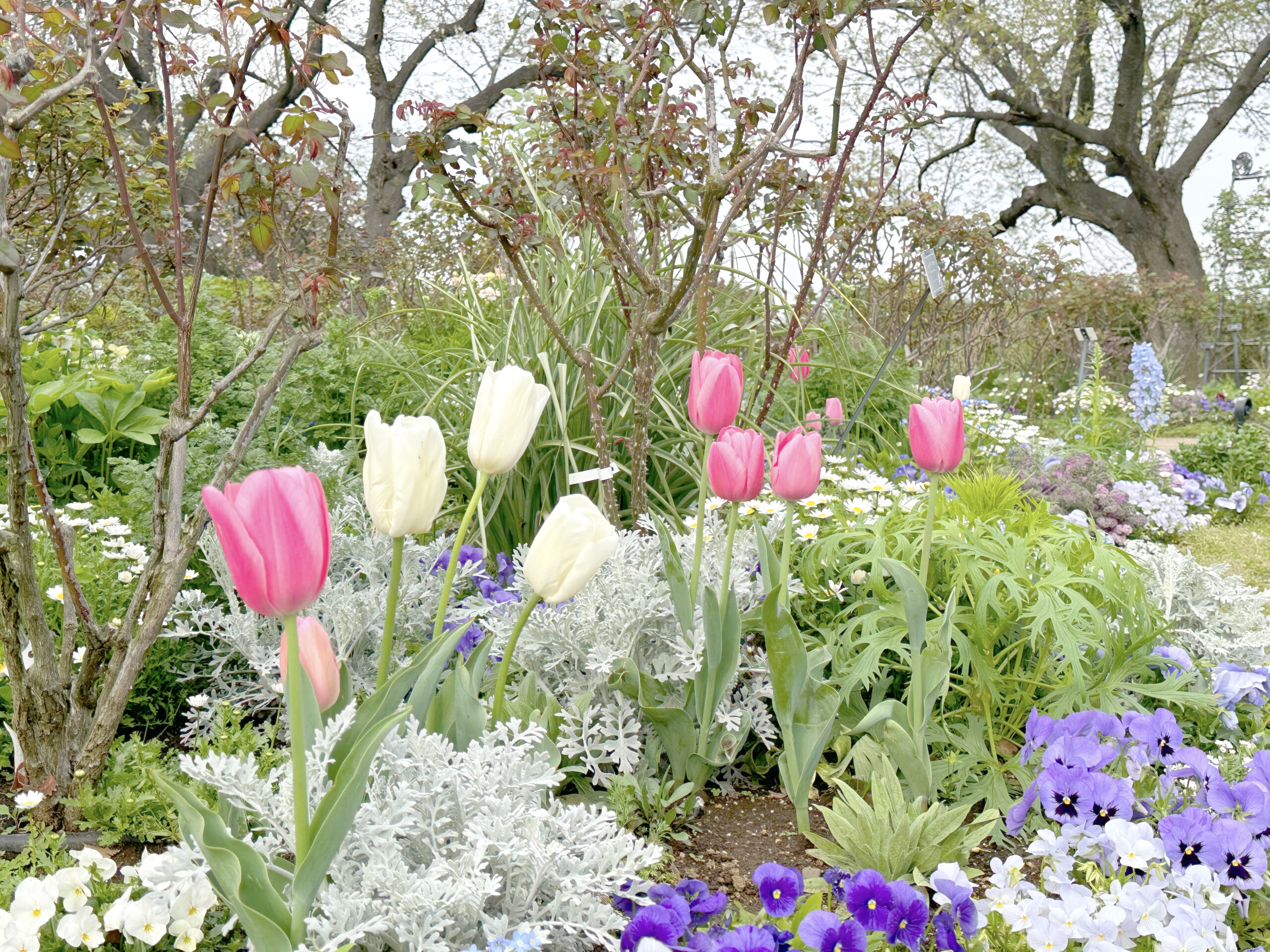 公園の中央入り口付近に位置するイングリッシュ・ローズの庭では、バラと同じか、それより少し前が見ごろになるというチューリップが盛期を迎えていました。