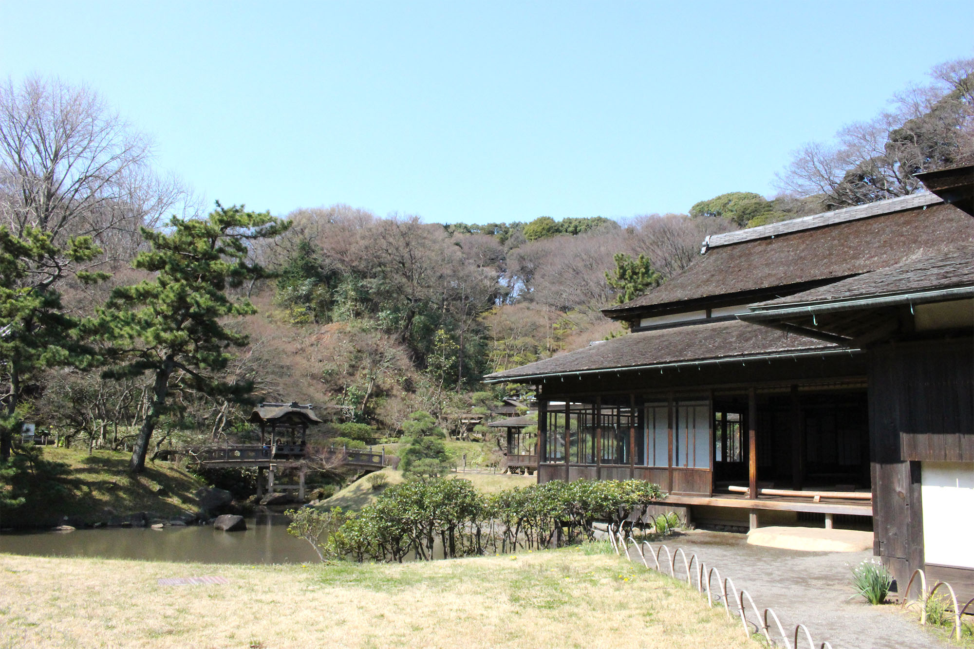 三渓園内で、大池の南部/東部に位置しています。