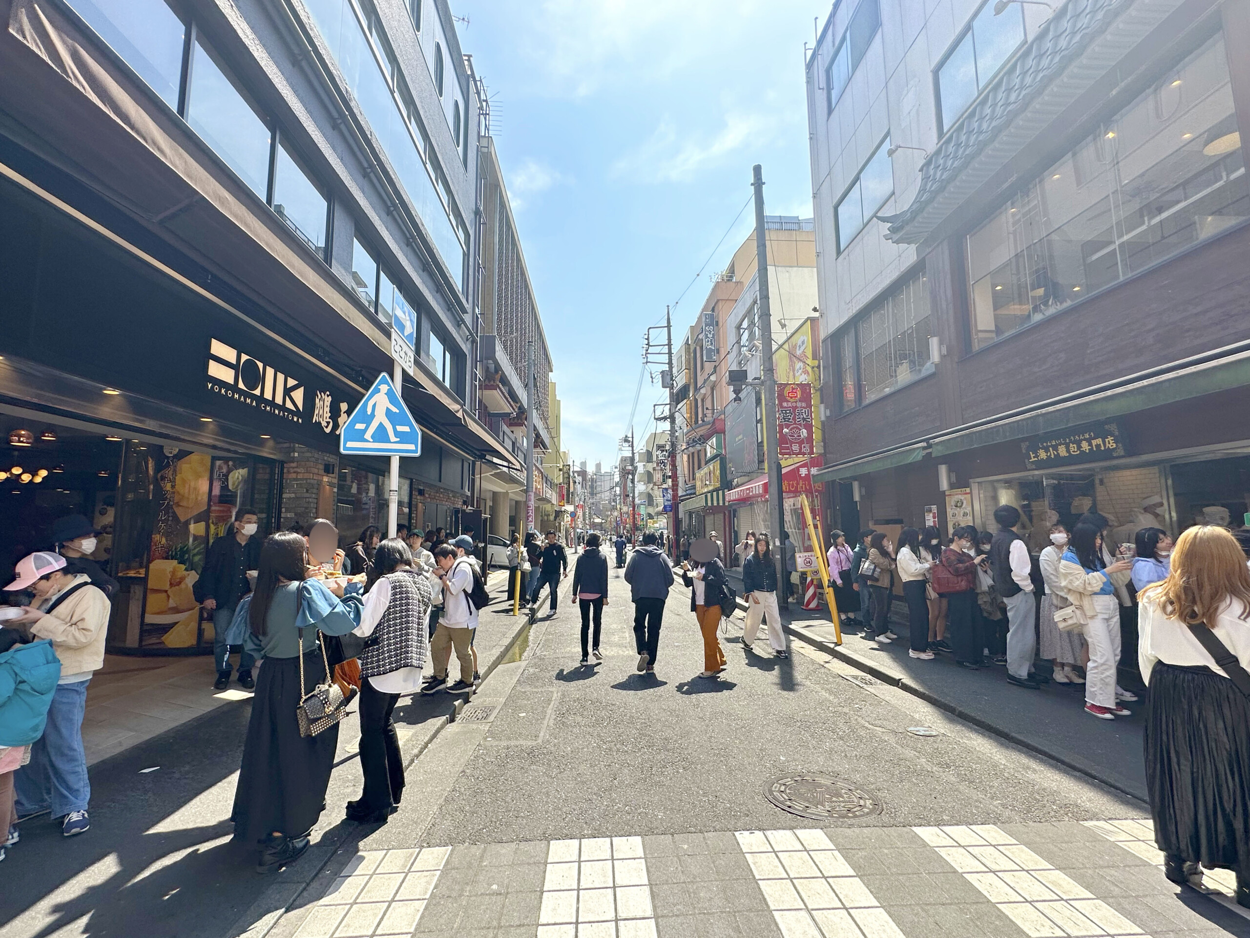 上海路は二軒の”鵬天閣”に挟まれる形で南北に伸びていて、上海路沿いでは、食べ歩きのお客さんが道沿いに広がっています。向かって右が小籠包専門店、左がタピオカと点心のお店”七茶“です(リンクはそれぞれ公式サイトです)。