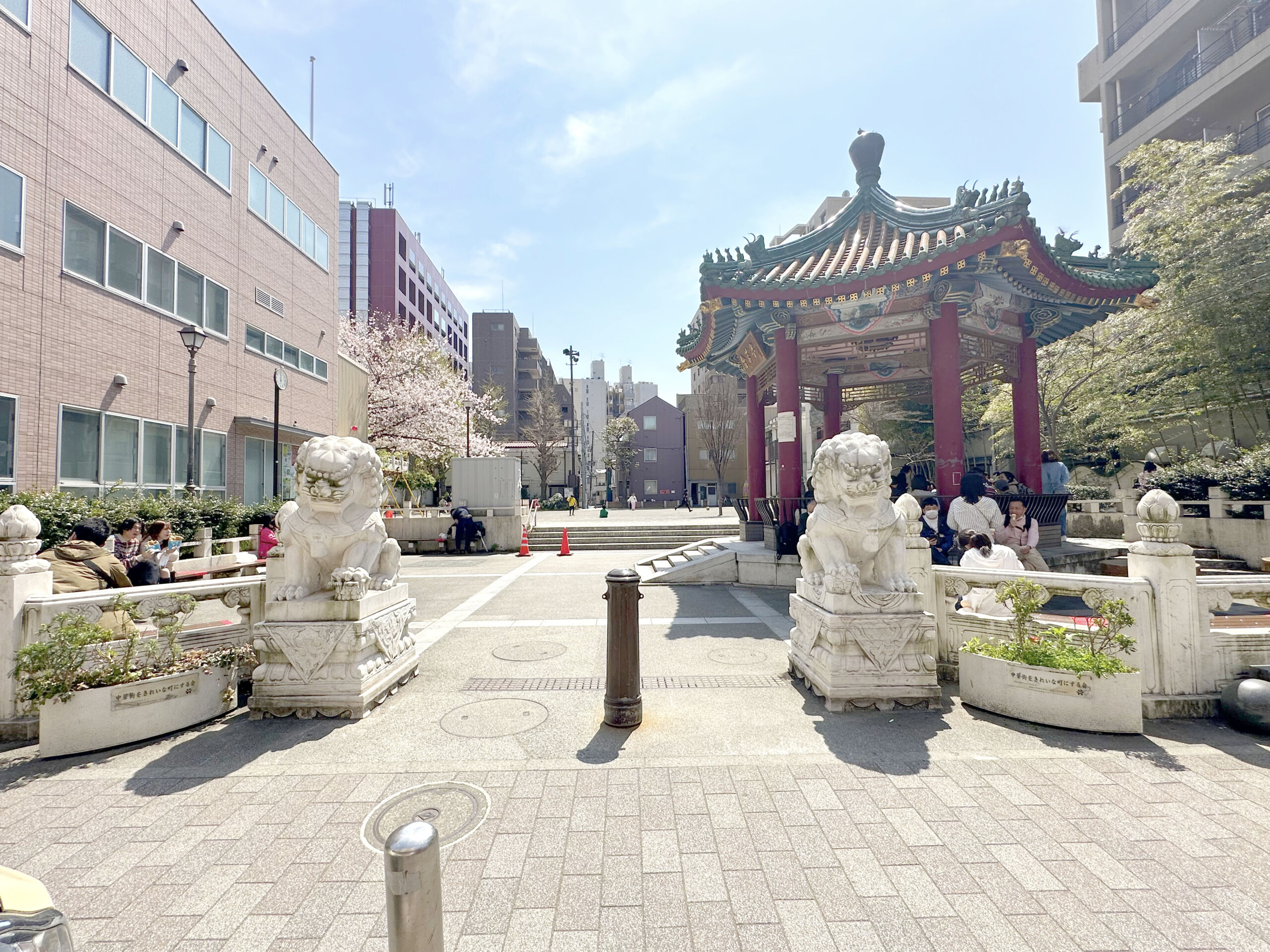 公園内に入ると、関帝廟通りを背にして右手に會芳亭、左手前方には桜の木が植えられていますが、