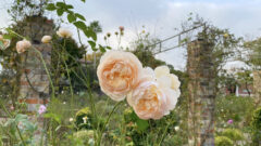 春先に存在感が強かった枝垂桜に変わって、秋は銀杏とバラが主役となります。