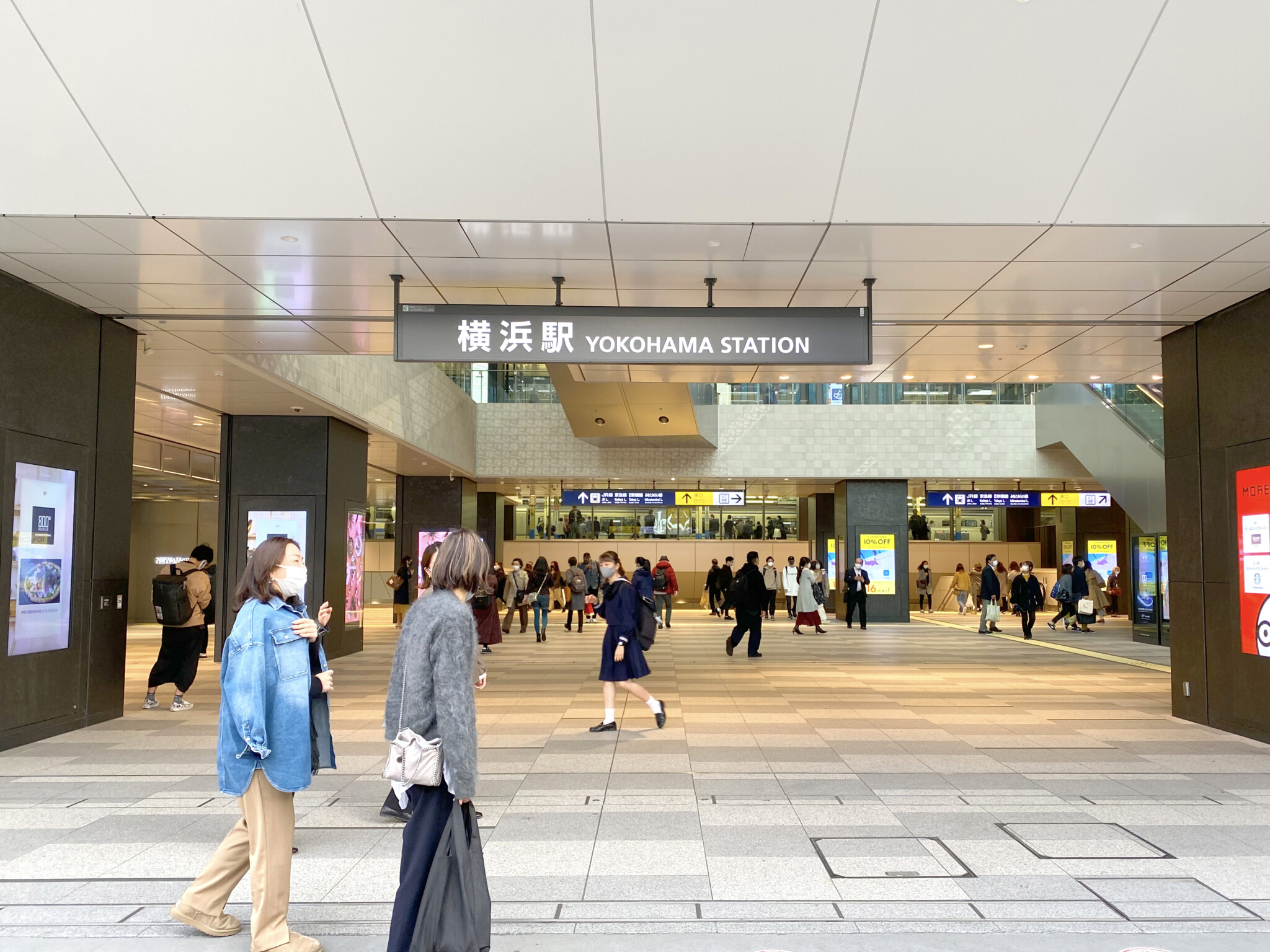 みなとみらい線の正面改札に近い横浜駅「きた」口は、駅構内から改札に向かって、