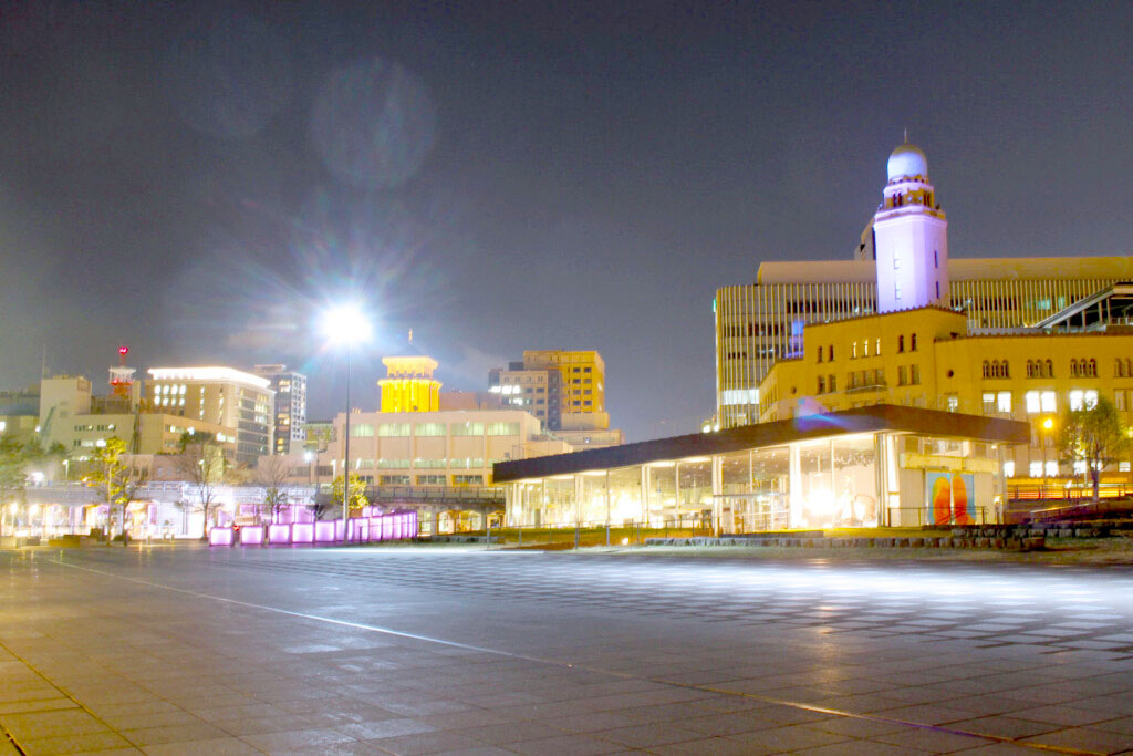 象の鼻テラス(公式サイト)や開港波止場方面は、パネルのライトアップが華やかな一帯で、